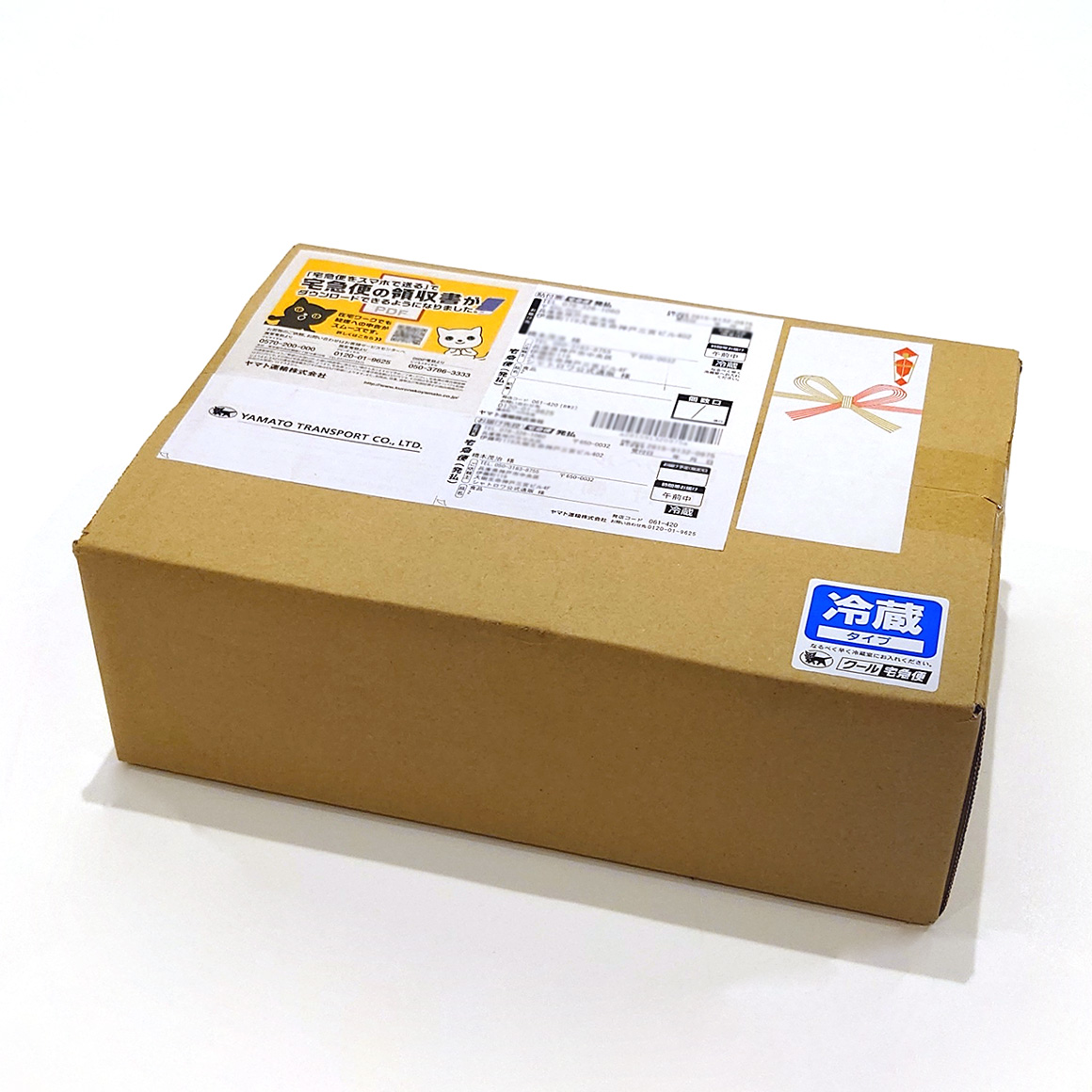 外箱(配送時の輸送箱)に熨斗シールを貼りお届けいたします。